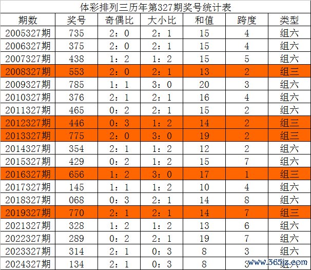 体彩陈设三积年第327期开出奖号辞别为:735、375、438、553、785、376、465、446、775、354、429、656、145、068、770、328、289、314、134。统计详见下表: